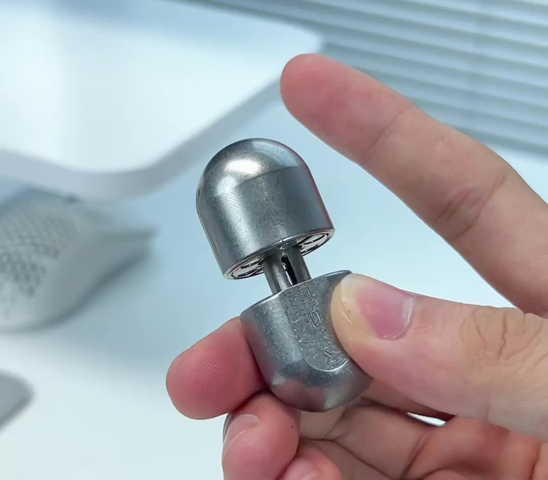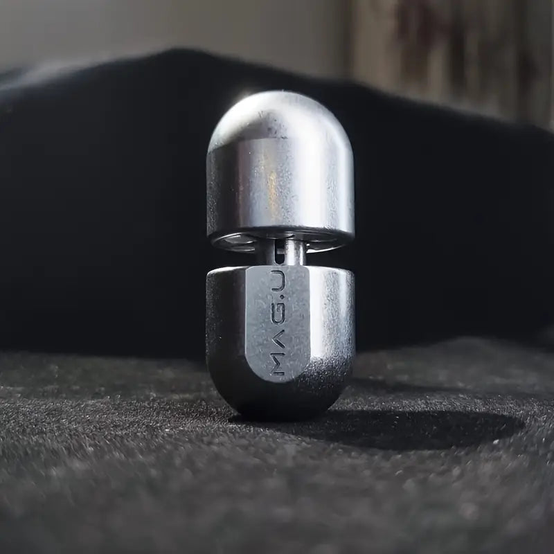 Magnetic levitation capsule made of high-quality stainless steel weighing 100 grams, being an EDC (Every Day Carry) device.